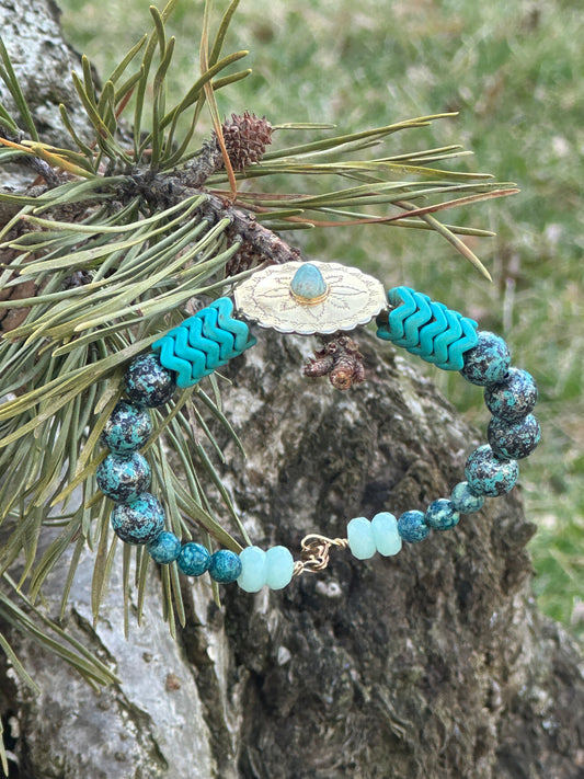 Burnt Orange and Green Necklace with Brown and Green Turtle