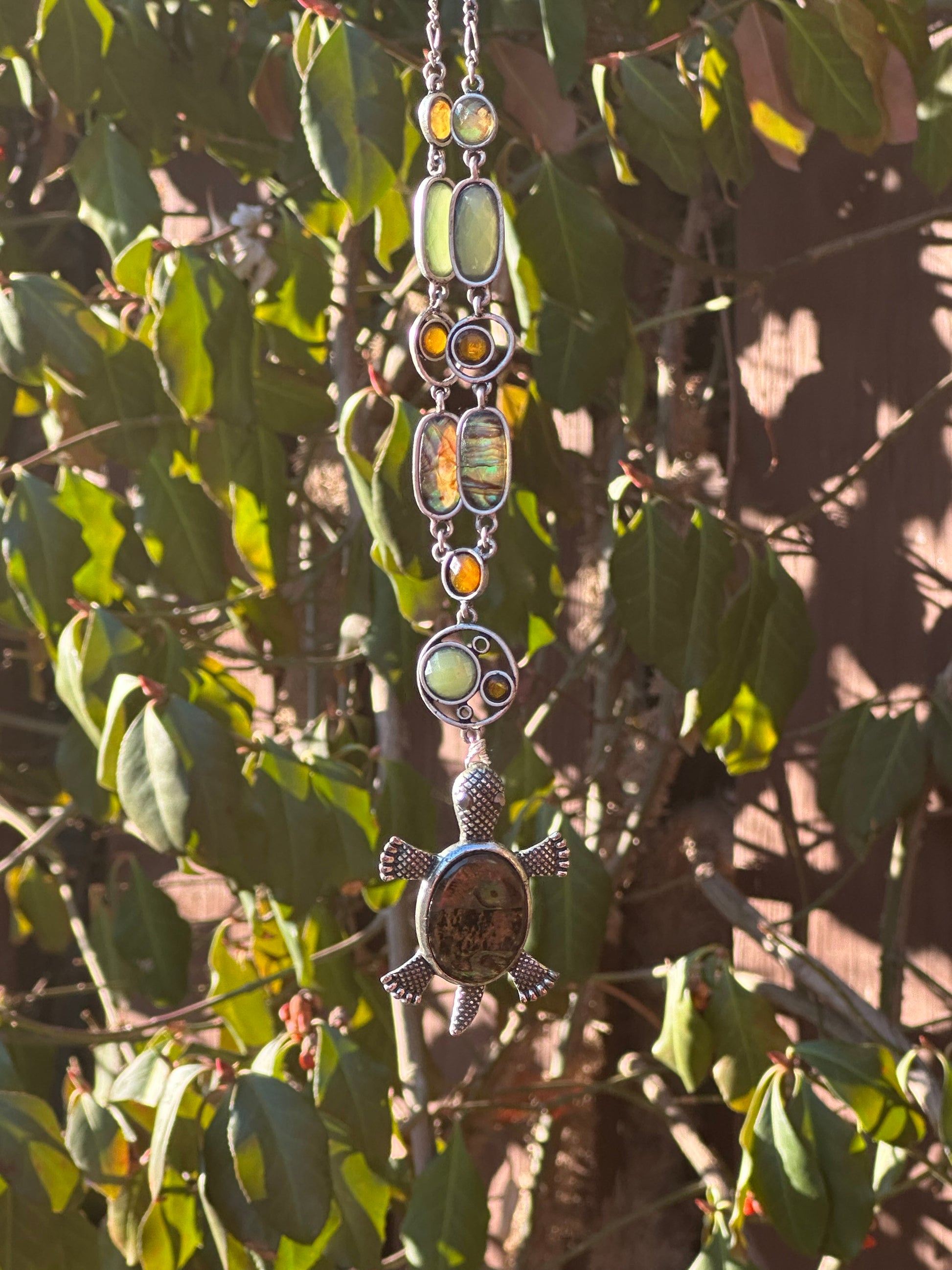 Burnt Orange and Green Necklace with Brown and Green Turtle
